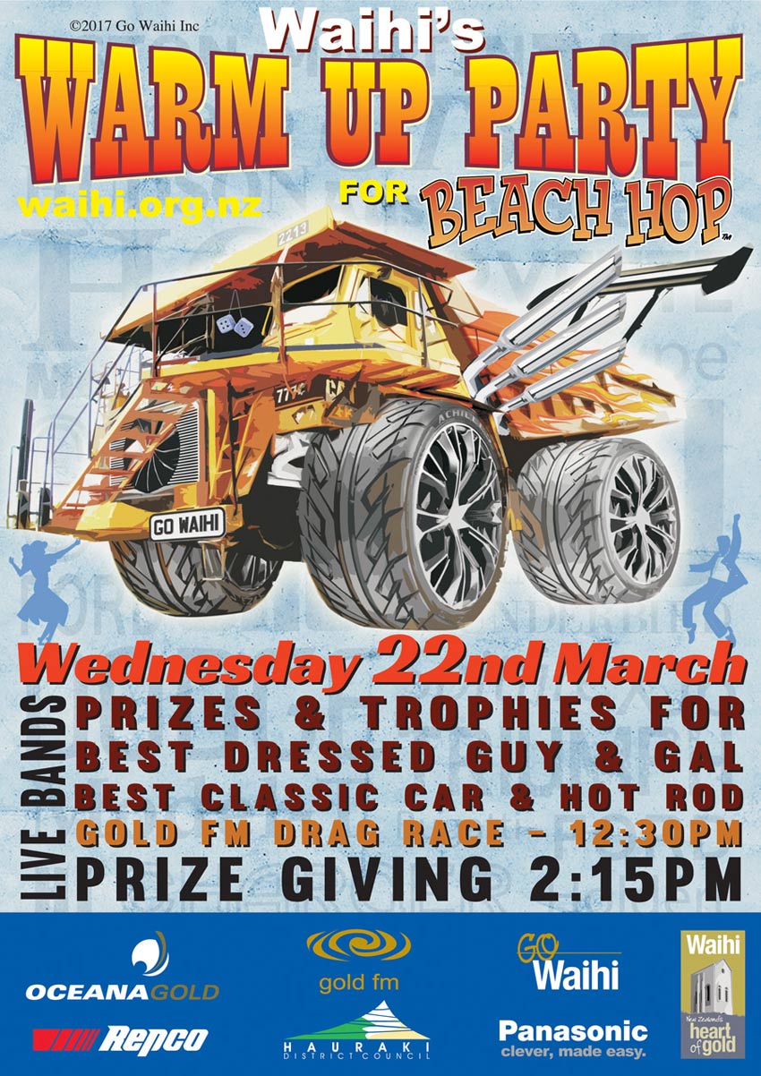 Come to the best street party down under. Waihi’s main street becomes a drag race strip - with a difference . Check out Martha Mine and the view from the Cornish Pump House, as you listen to the sound of Rock N Roll from inside this historic icon. Cruise into town on your way to Whangamata for the Beach Hop. Dance the day away in the main street or check out the local shops and their Retro window displays. Grab a coffee from the local Cafe’s or support the local groups & schools sausage sizzles.